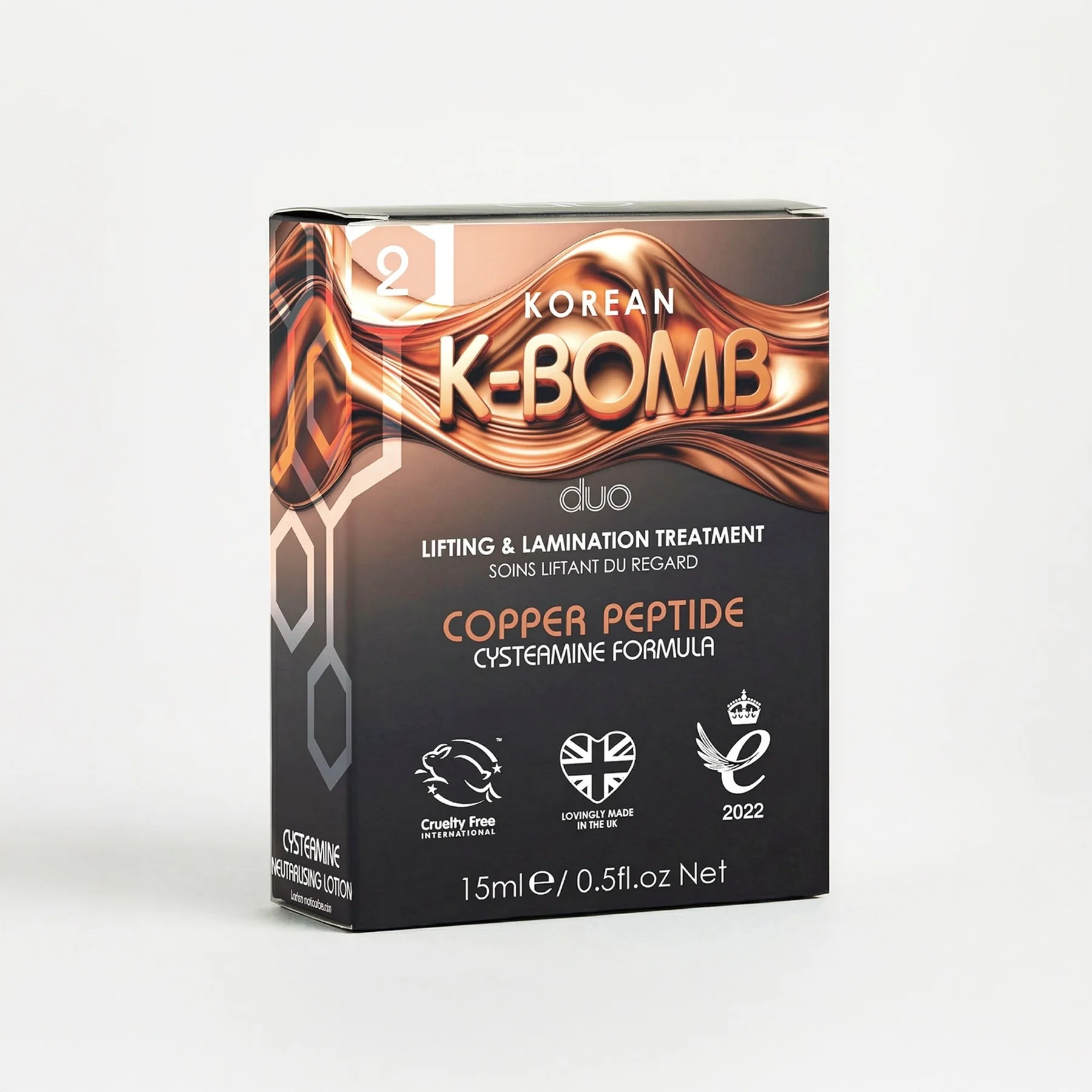 K-Bomb is ontwikkeld met de gezondheid van wenkbrauwen en wimpers in gedachten en bevat een innovatief koperpeptidecomplex dat wenkbrauwen en wimpers revitaliseert tijdens het inwerken Van koperpeptiden is klinisch bewezen dat ze: